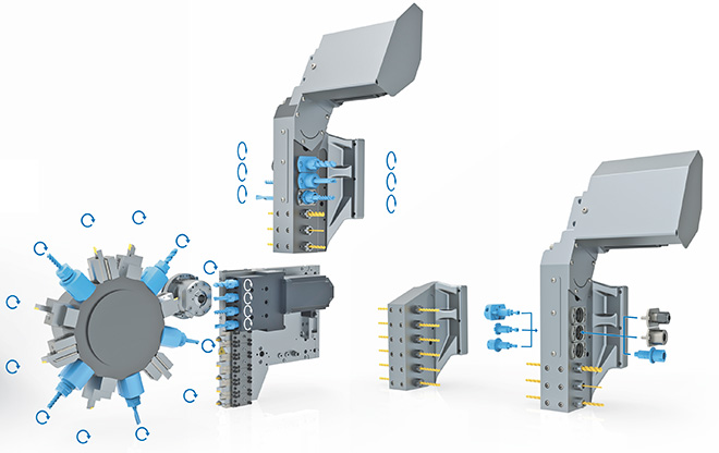 MANURHIN K'MX 916 CLEVER è stata progettata per la lavorazione produttiva di pezzi da barre con diametro massimo di 16 mm e 20 mm.
